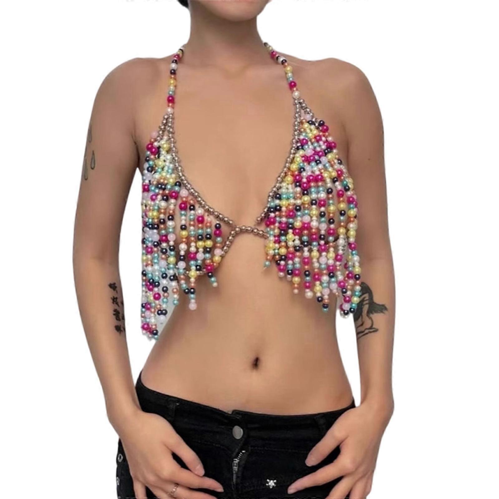 Friendly Acrylic Beaded Adjustable Bikini Coverup Top Lightweight Women’s Summer Body Chain Bra Fashion Bead Body Chain One Size