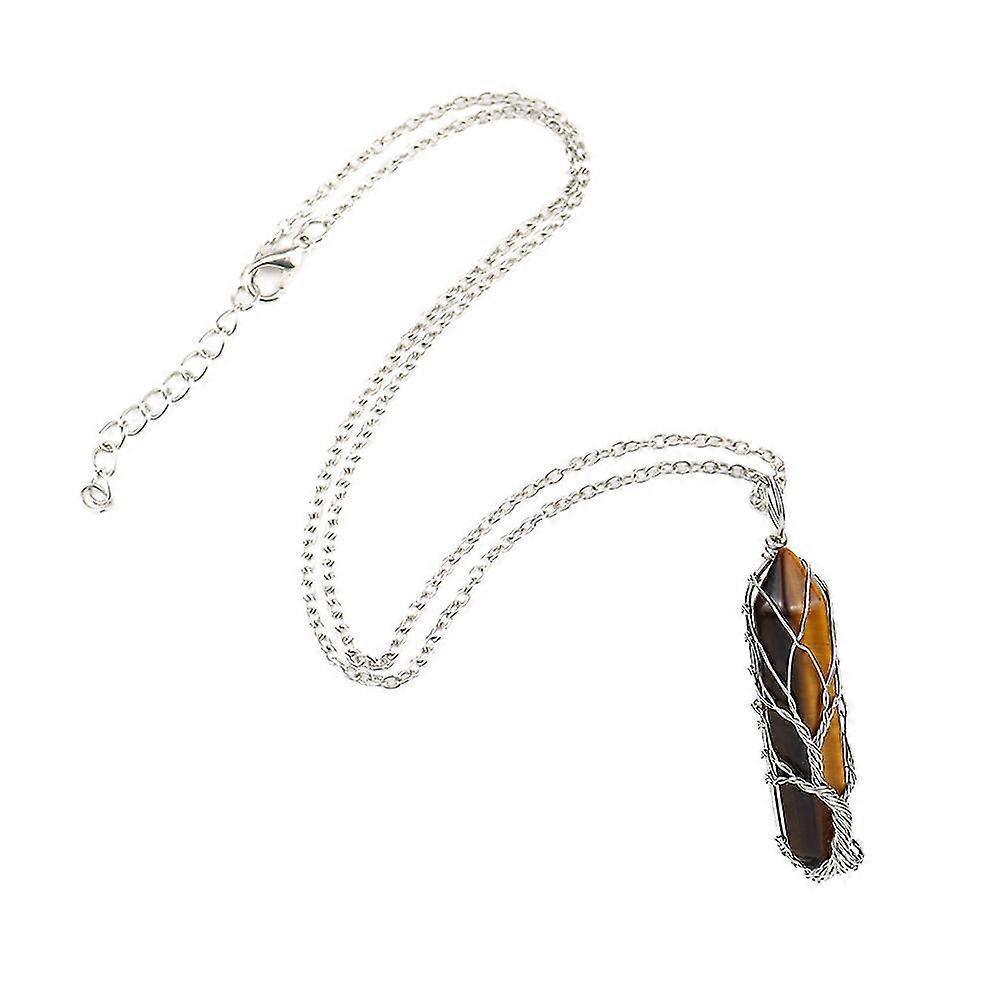 Hand Wound Tree Of Life, Natural Raw Stone Crystal Six Prism Necklace