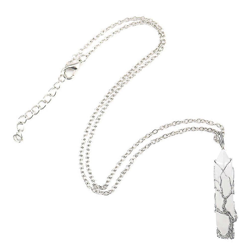 Hand Wound Tree Of Life, Natural Raw Stone Crystal Six Prism Necklace