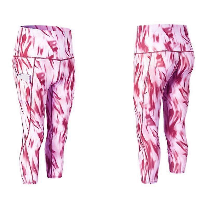Yoga Sports Pants Hip Lifting Waist Digital Printing Camouflage Jacquard Pants Sports Cropped Pants (red)