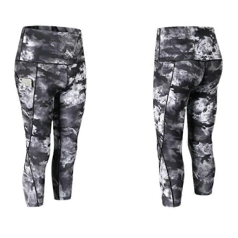 Yoga Sports Pants Hip Lifting Waist Digital Printing Camouflage Jacquard Pants Sports Cropped Pants (black)
