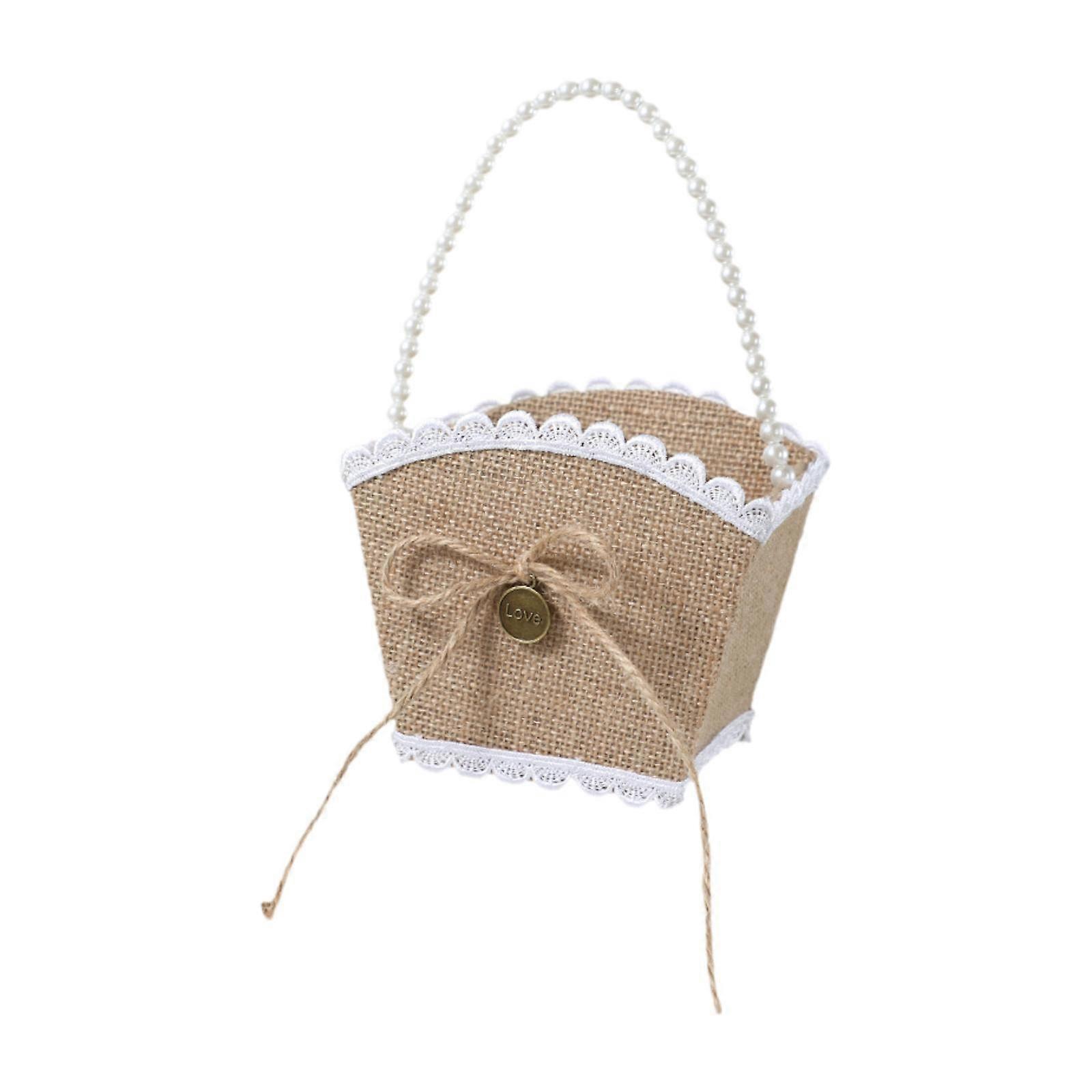 Burlap Wedding Flower Girl Basket Wedding Flower Basket Handbasket with Handle