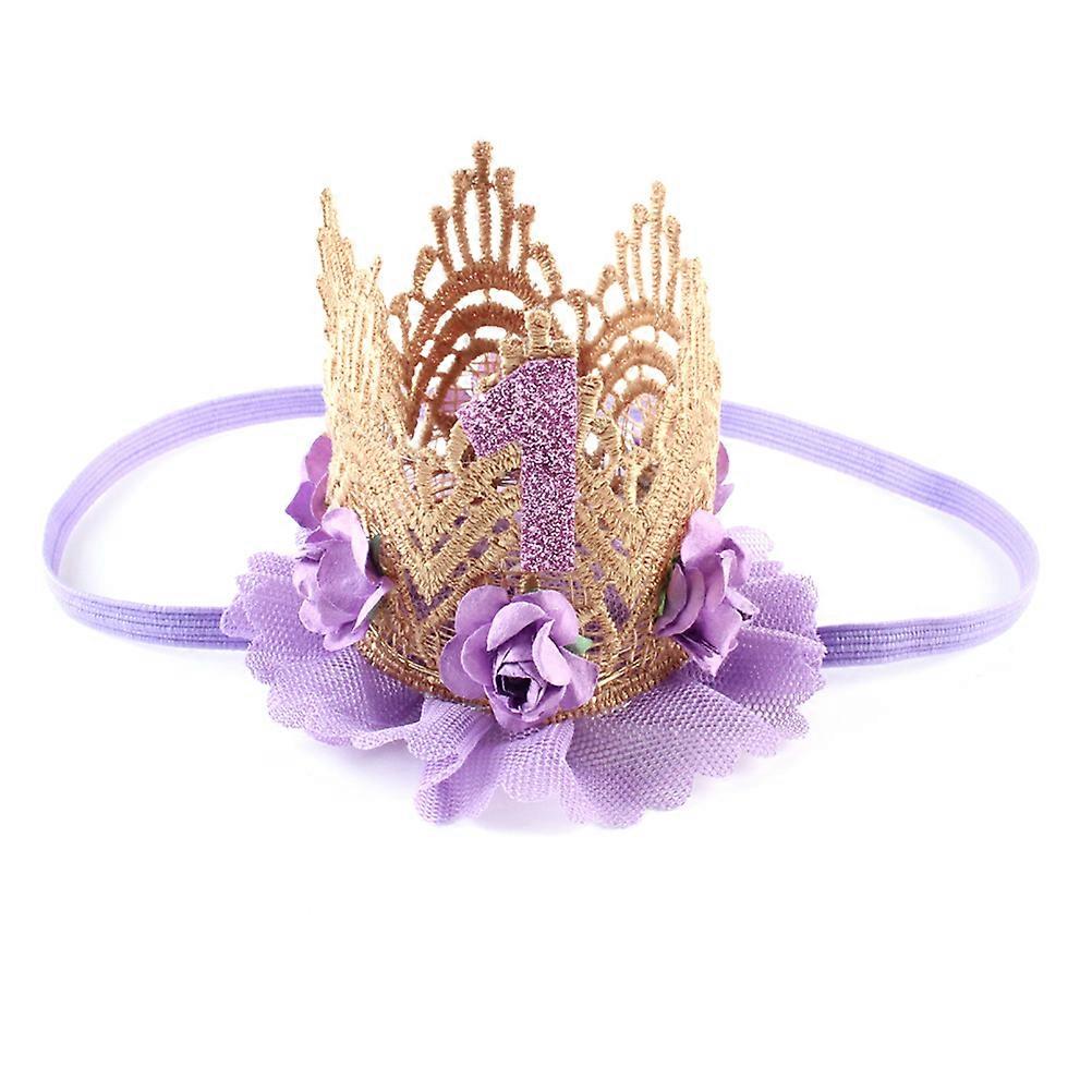 Baby's First Birthday Crown Rose Flower Lace Mesh Headdress Baby Girl 1st Birthday Hat Party Supplies Birthday Hat Photo Prop Headbands Hair Accessori