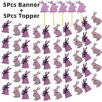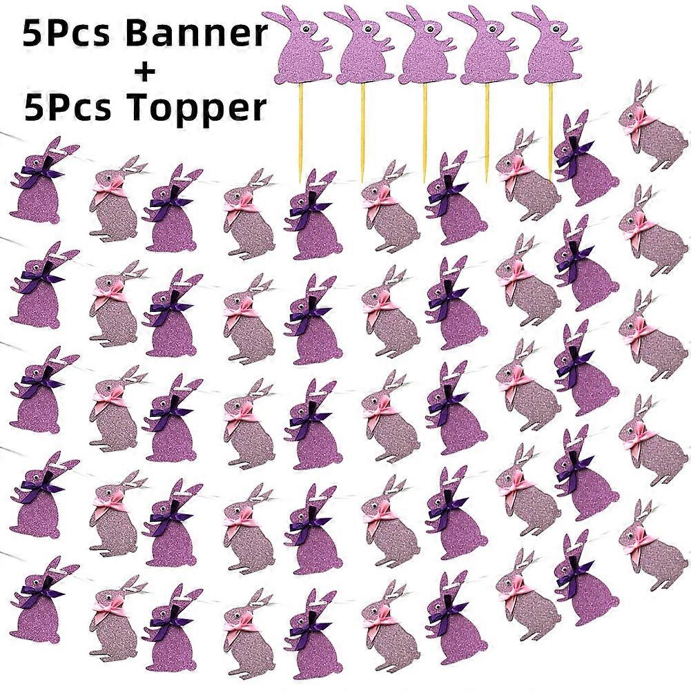 Easter Day Rabbit Bunny Hanging Flag Banners Bunting Cake Topper Party Decor Qinhai