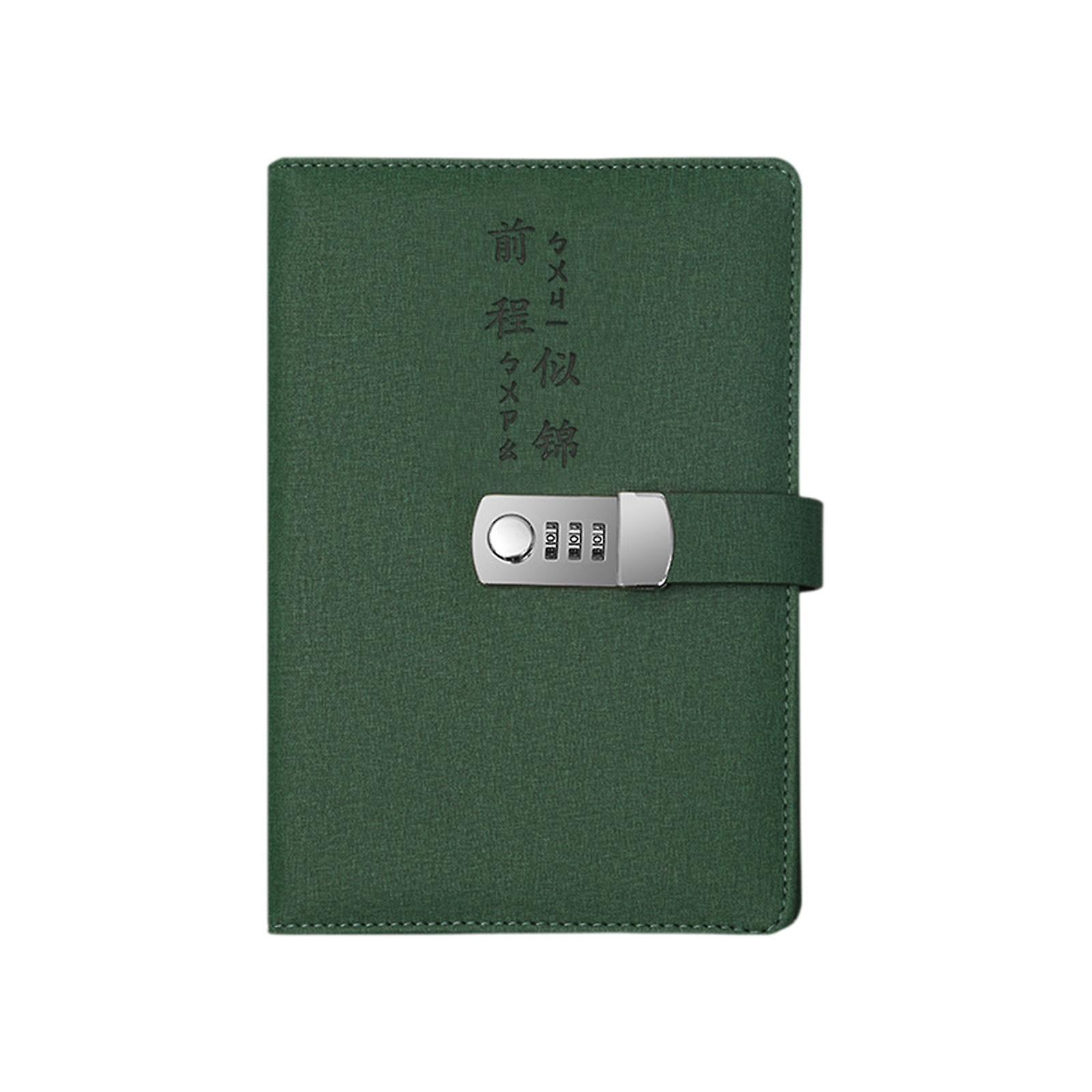 Diary with Lock Sturdy PU Leather Password Lock Diary for Home Office Adults Dark green