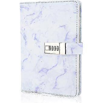 יומן שיש עם מנעול, יומן יומי A5 למילוי חוזר לנערות ונשים, 192 עמודים מחברת חמודה עם מנעול משולב לנערות ונערים - Purpl