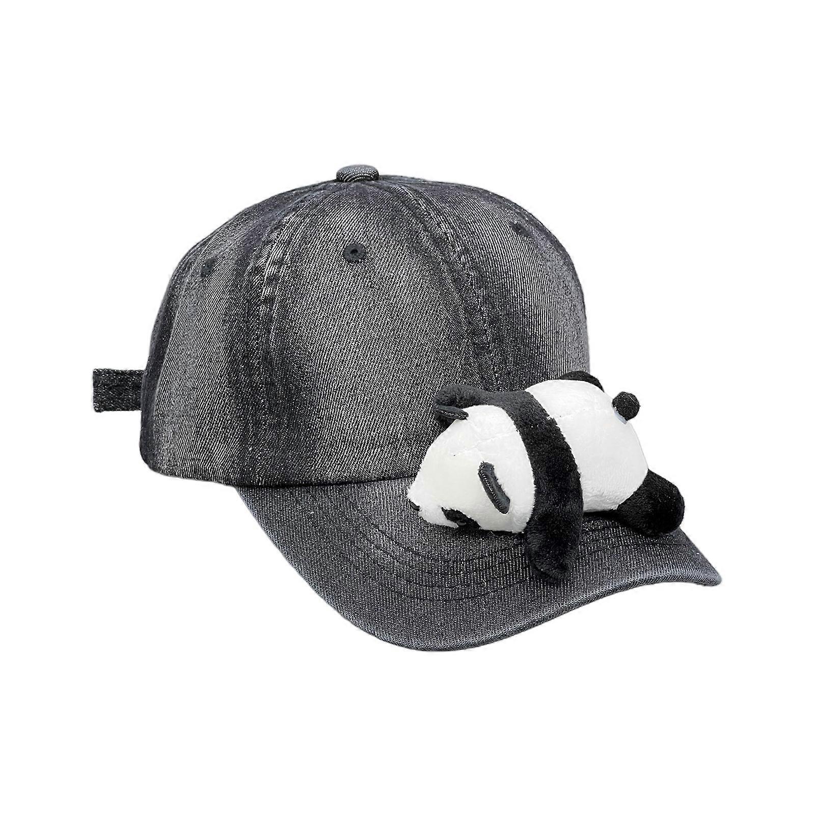 Unisex Baseball Cap Panda Decors Jean Hat for Spring Summer Adult Outdoor Adjustable Cycling Hiking Washed Denim Hat Black