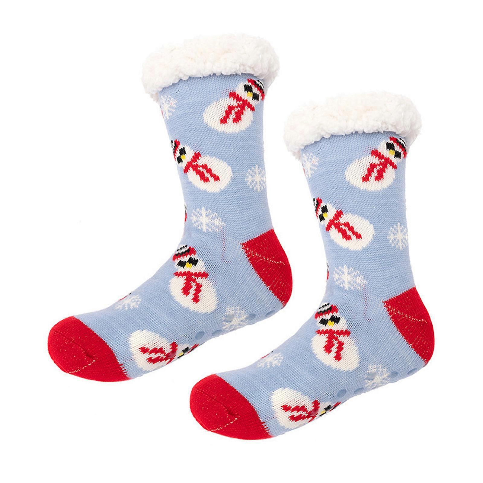 Unisex Christmas Thermal Fuzzy Slipper Socks with Grippers Funny Santa Elk Fleece Lined Non-Slip Foot Warmer Stockings