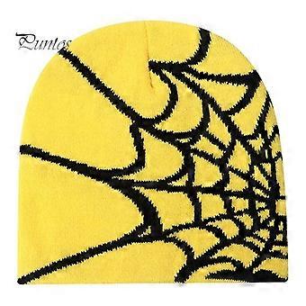 Unisex Winter Hat Spider Web Jacquard Knitted Dome Elastic Contrast Color Brimless Cold Weather Cap Cosplay Club Party Headwear
