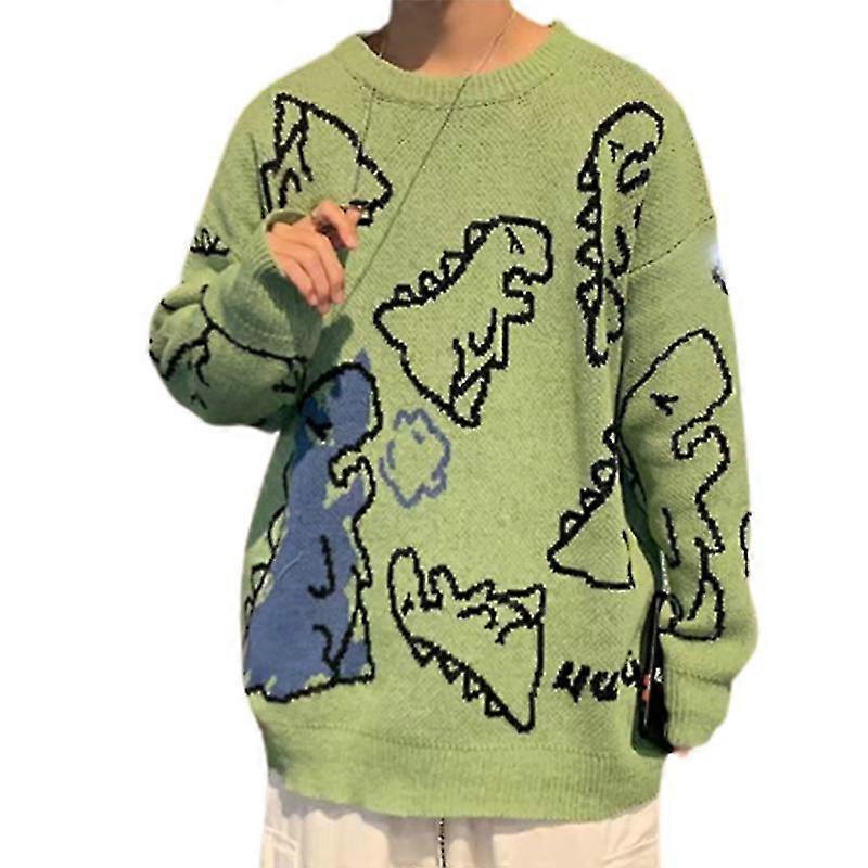 Unisex Cute Dinosaur Print Sweater O-neck Long Sleeve Oversized Knit Jumper Top