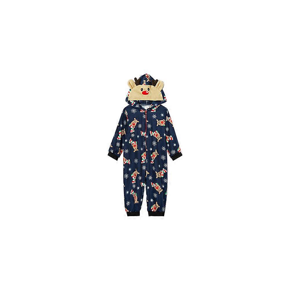 Unisex Family Christmas Siamese Pajamas Sets Deer Head Embroidery Hooded