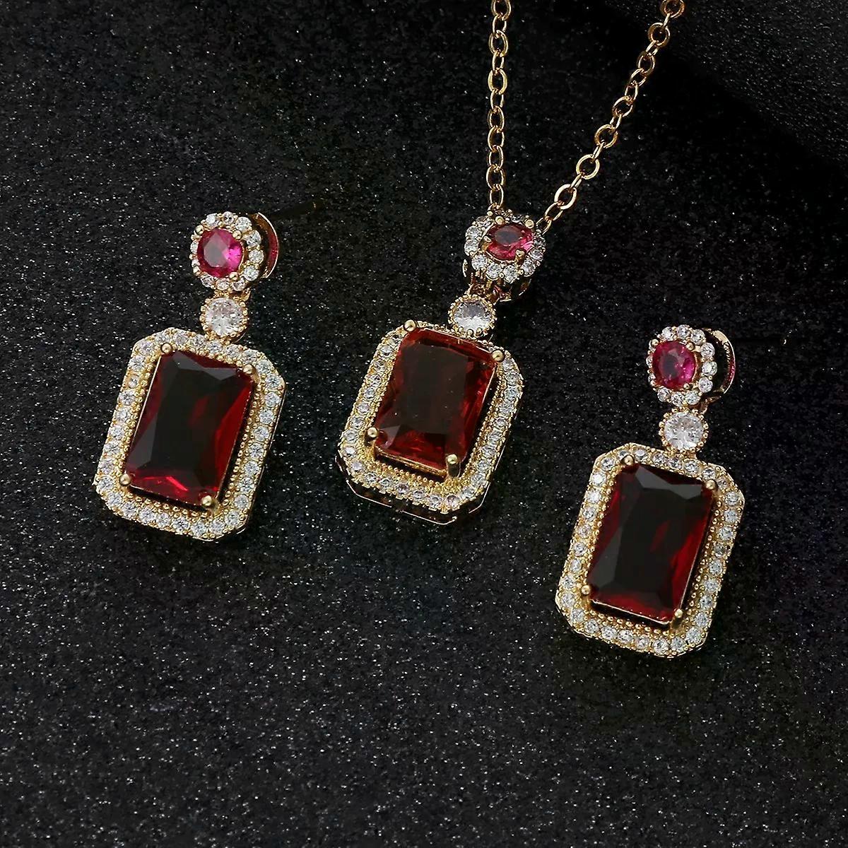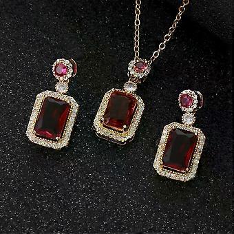 Luxury Queen Charm Red Zircon Women s Jewelry Set Stainless Steel Square Pendant Necklace and Earring Set Jewellry