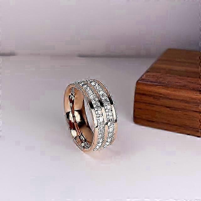 Luxury Rose Gold Color Double Row Square Zircon Stainless Steel Ring for Women Romantic Engageme Wedding Party Jewelry Female