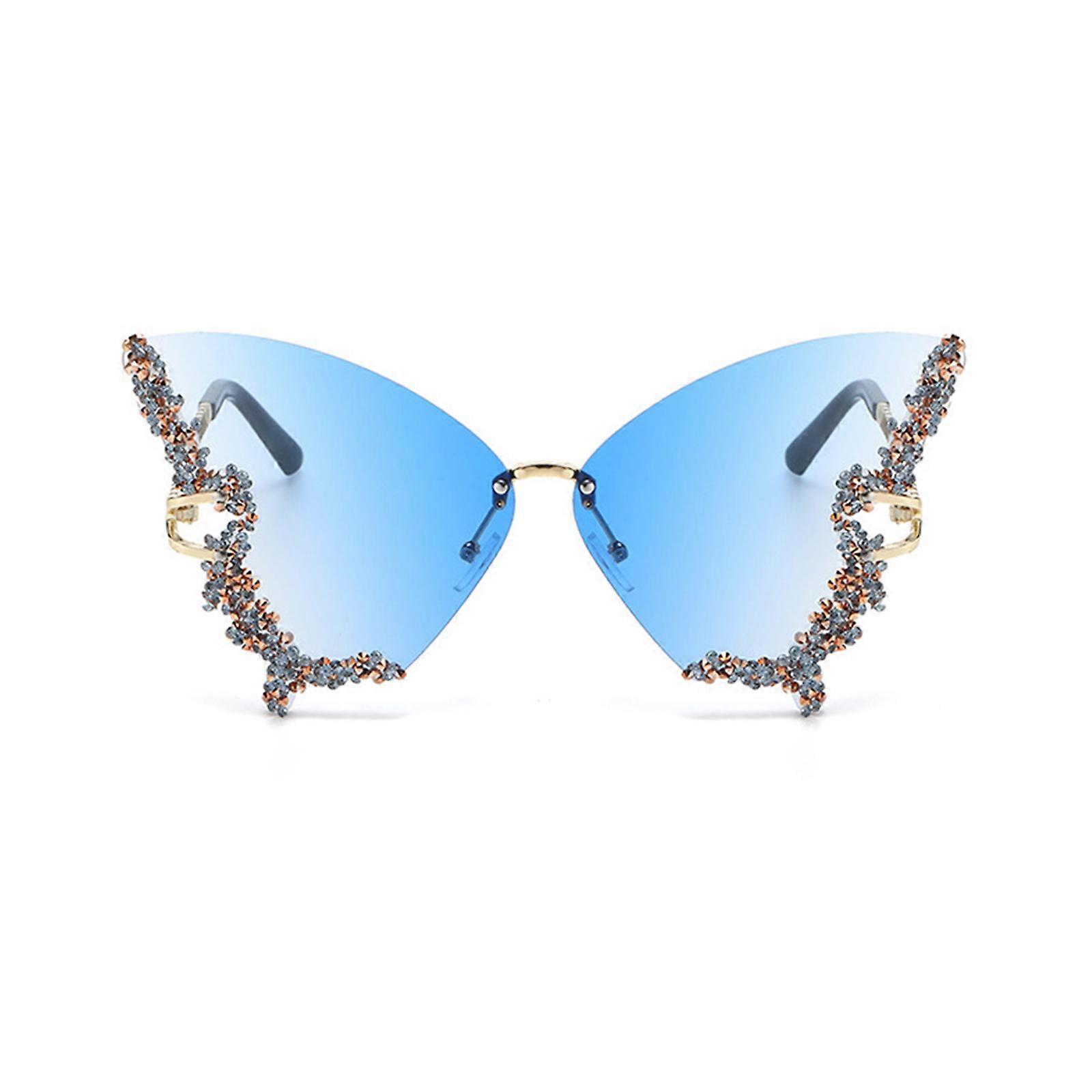 Luxury Diamond Butterfly Sunglasses Women Vintage Rimless Oversized Rhinestone bling Sun Glasses