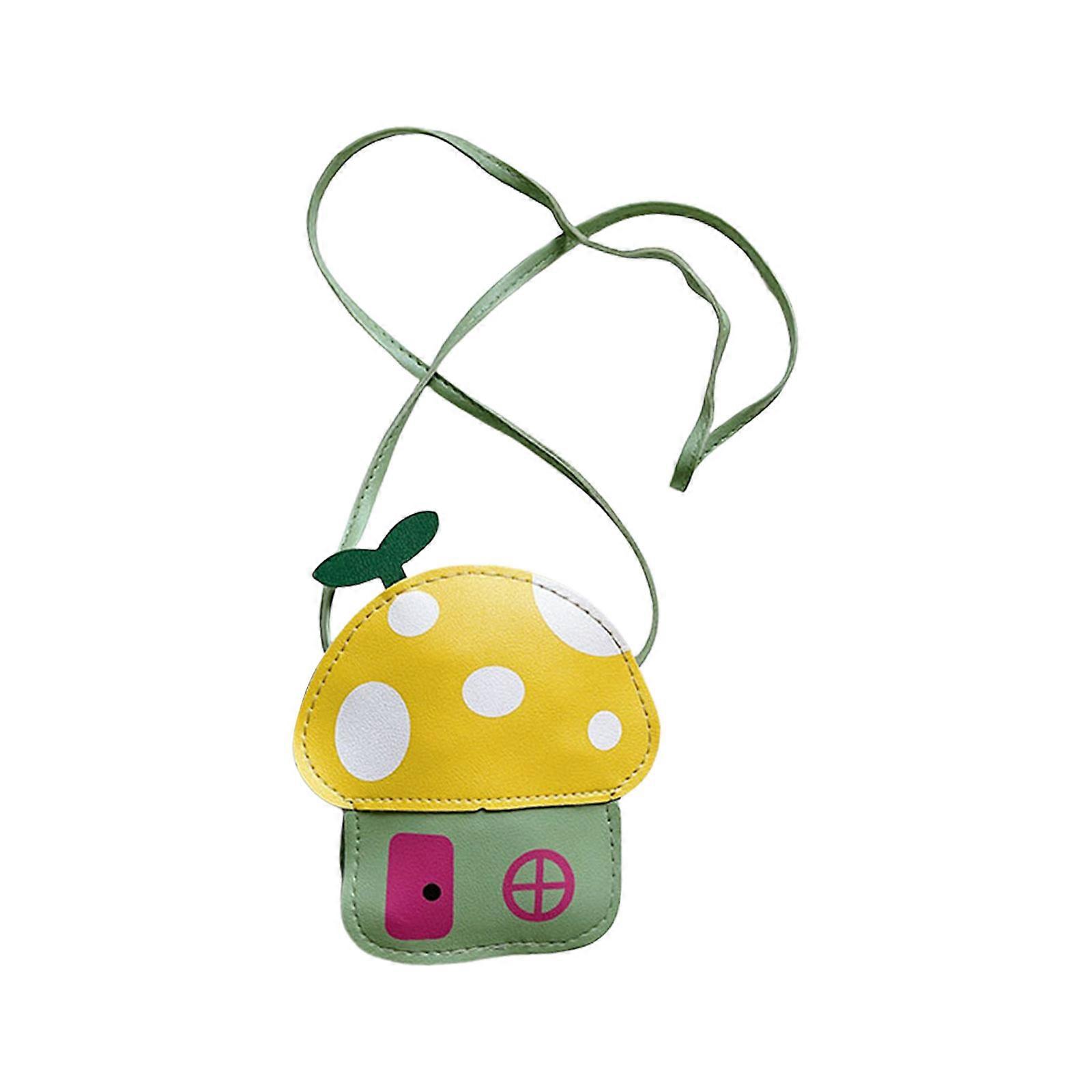 Unique Girls' Mushroom Shaped Mini Shoulder Bag with Zippered Closure PU Leather Travel Pouches Phone Purse Yellow