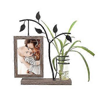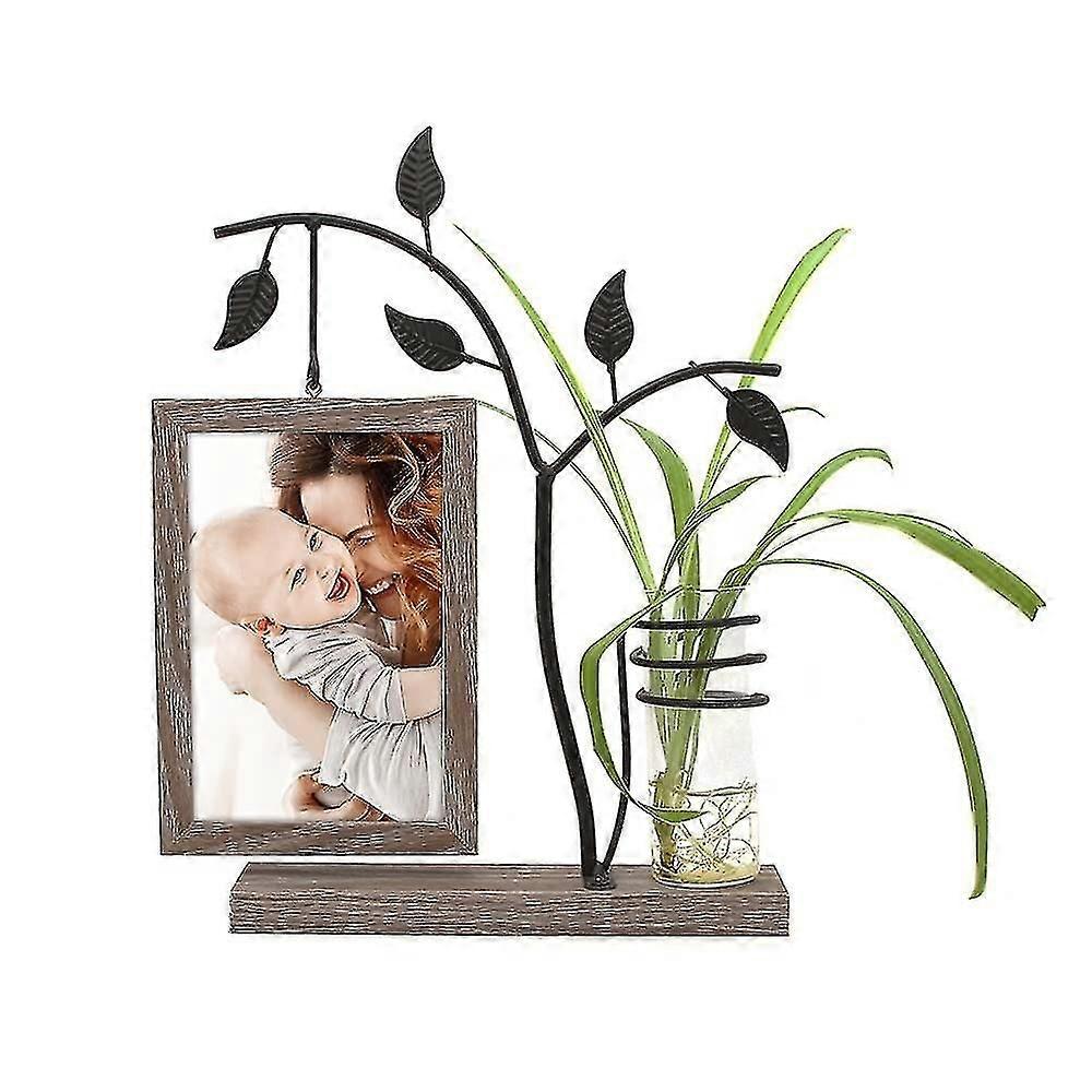 Unique Wooden Photo Frame Metal Tree Vase Double Sided Display Unique Mother's Day Gift