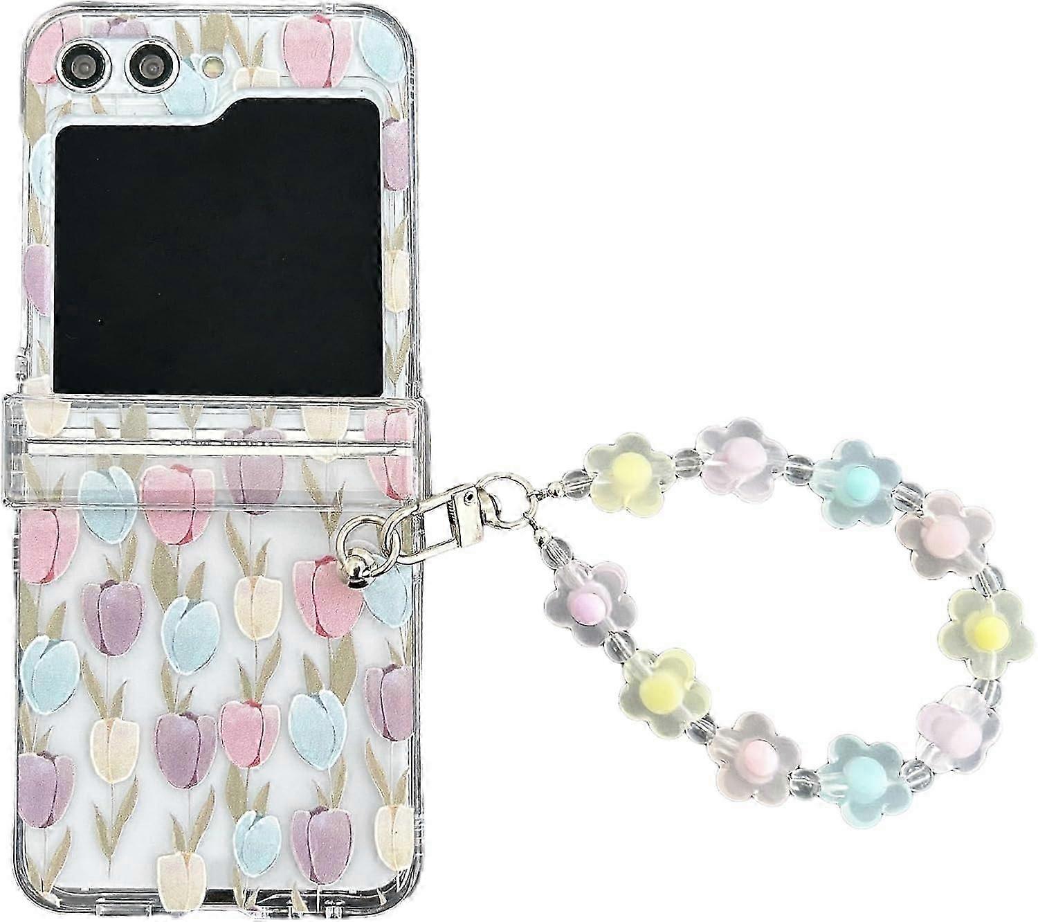 unique For Samsung Galaxy Z Flip 6 Case with Colorful Chain Strap Bracelet, Cute Girly Lady Crystal Clear PC Shockproof Protective Case