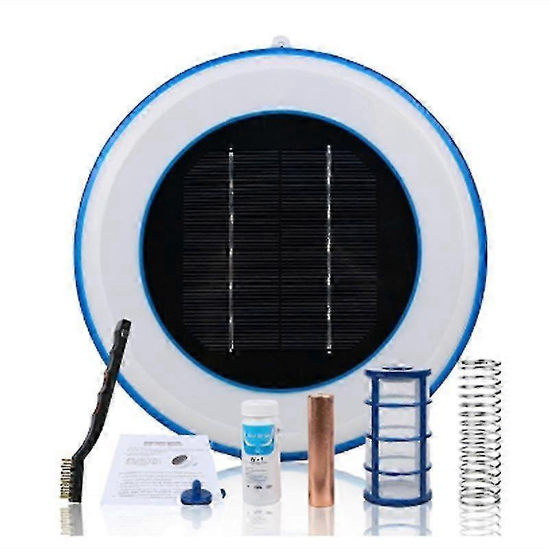 PREMIUM MATERIALS: Copper anode replacement kits are made of high quality copper materials for longer service life, copper anodes can meet your daily use and replacement. Using an ionizer has many advantages: reducing chlorine usage by up to 80 percent . Low power, safe and efficient to use. Absorb harmful substances such as calcium and iron. Removal of harmful microorganisms protects the healthy balance of aquatic organisms. Solar Panels: Solar water purifiers are small, strong, durable polymer discs with an OS-replaceable copper rod anode on the bottom and a solar panel on top. Energy Efficient: A water purifier with solar power will save you money and time on pool maintenance by saving you pool chemistry and electricity costs. Simple and efficient. Simple and convenient to use: just float in the pool. Solar panels produce anode ionization in sunlight that can help you clean your pool in no time. Solar panel power: 2W, 6V Colour:blue or White Material:plastic Package Contents: 1 x Pool Ionizer Kit Only the above package content, other products are not included. Note: Light reflection and different displays may cause the color of the item in the picture a little different from the real thing. The measurement allowed error is 1-3cm.