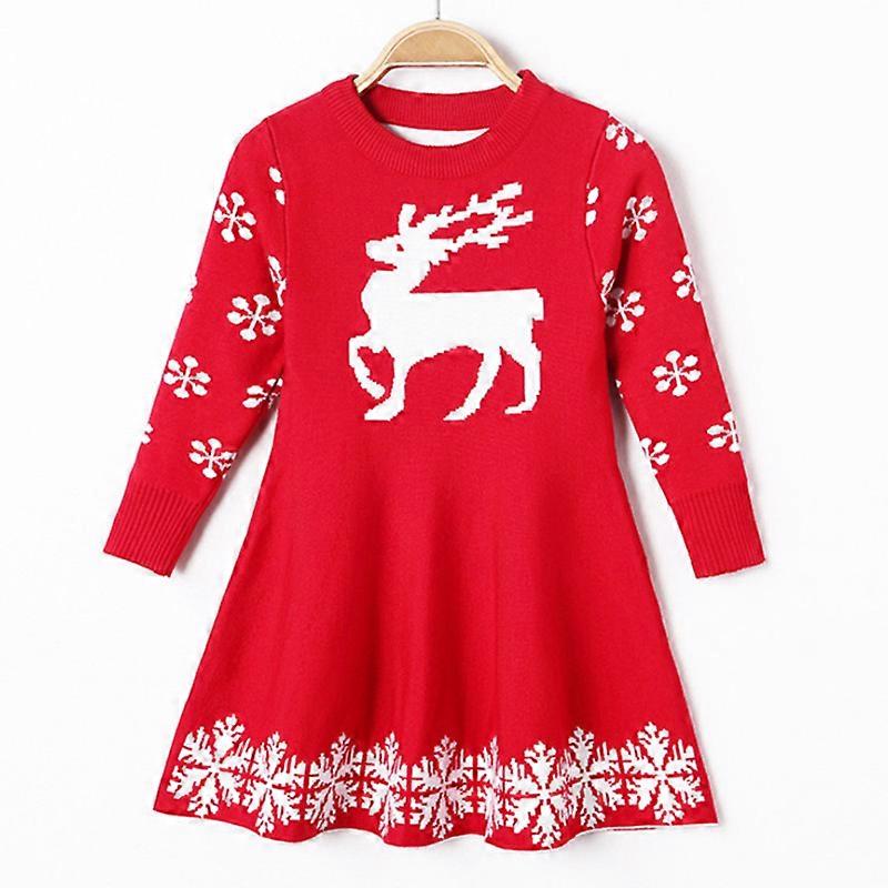 Little Girls Christmas Dress Reindeer Snowflake Xmas Gifts Winter Knit Sweater Dresses