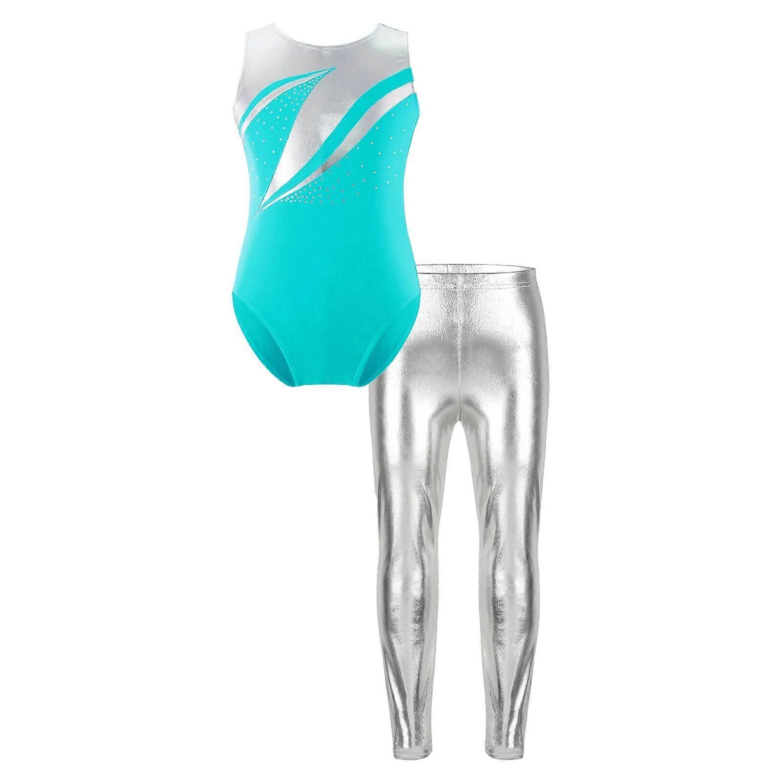 Children Ballet Dance Outfits Dancewear Sets Kids Girls Sleeveless Gymnastics Leotard + Metallic Leggings Gymnastics Jumpsuit