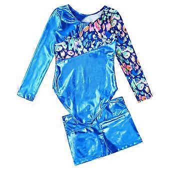 ילדים בנות בלט התעמלות בגד גוף עם מכנסיים קצרים שרוול ארוך מודפס טלאים התעמלות בגד גוף לבנות אתלטי אוברולים