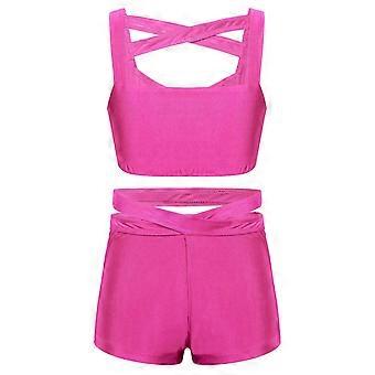 ילדים בנות בלט התעמלות תלבושת צבע אחיד ערכות יוגה ללא שרוולים חזיית ספורט קרופ טופ ריקוד מכנסיים קצרים ילדים אימון חליפת ספורט