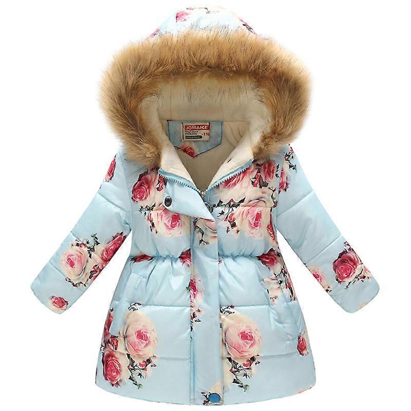 Kids Girls Faux Fur Hooded Parka Coat Padded Winter Warm Puffer Jacket Outerwear