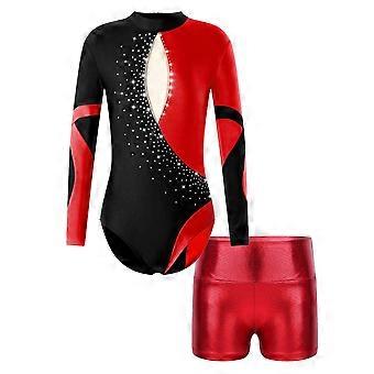 ילדים בנות מבריק טלאים התעמלות בגד גוף עם מכנסיים קצרים ילדים בלט ריקוד תלבושת שרוול ארוך החלקה על הקרח אוברול חליפת גוף