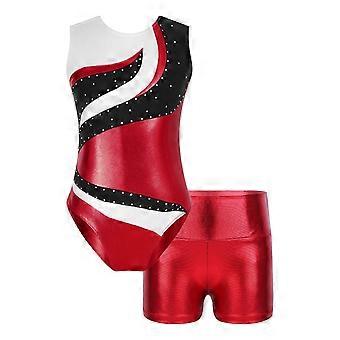 ילדים בנות מבריק מטאלי ללא שרוולים טלאים בלט בגד גוף בגדי ריקוד לתחרות ריקודים בגדי ריקוד ילדים התעמלות אוברול