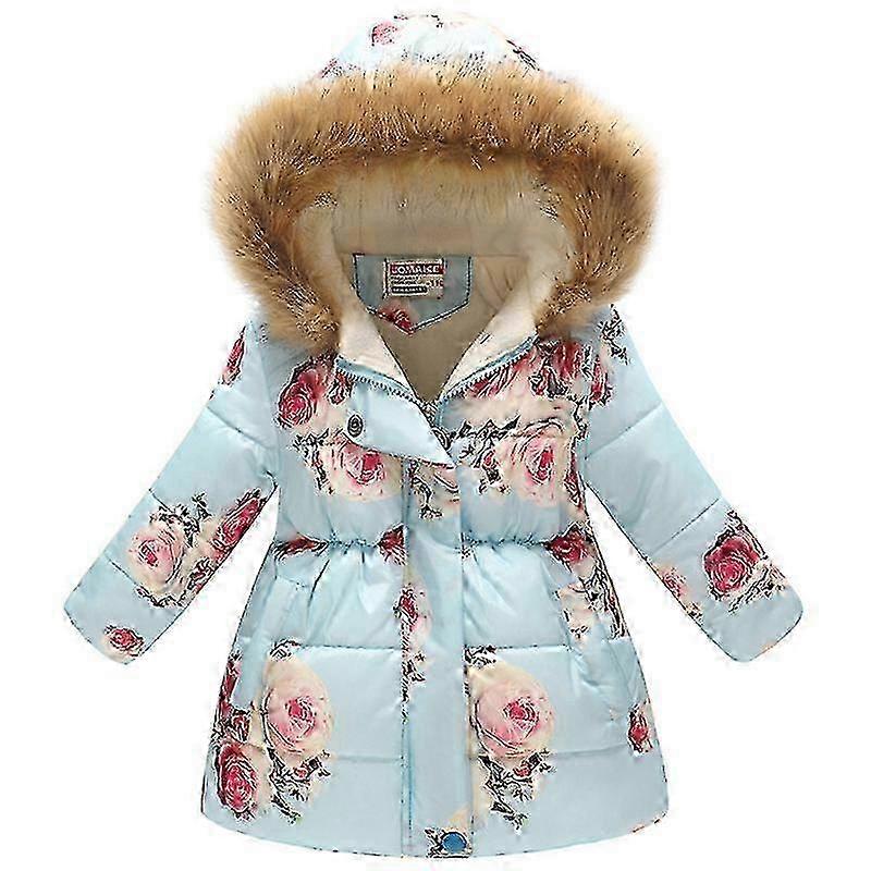 Kids Girls Butterfly Print Hooded Puffer Jacket Winter Warm Padded Coat Outwear 4-11 Years