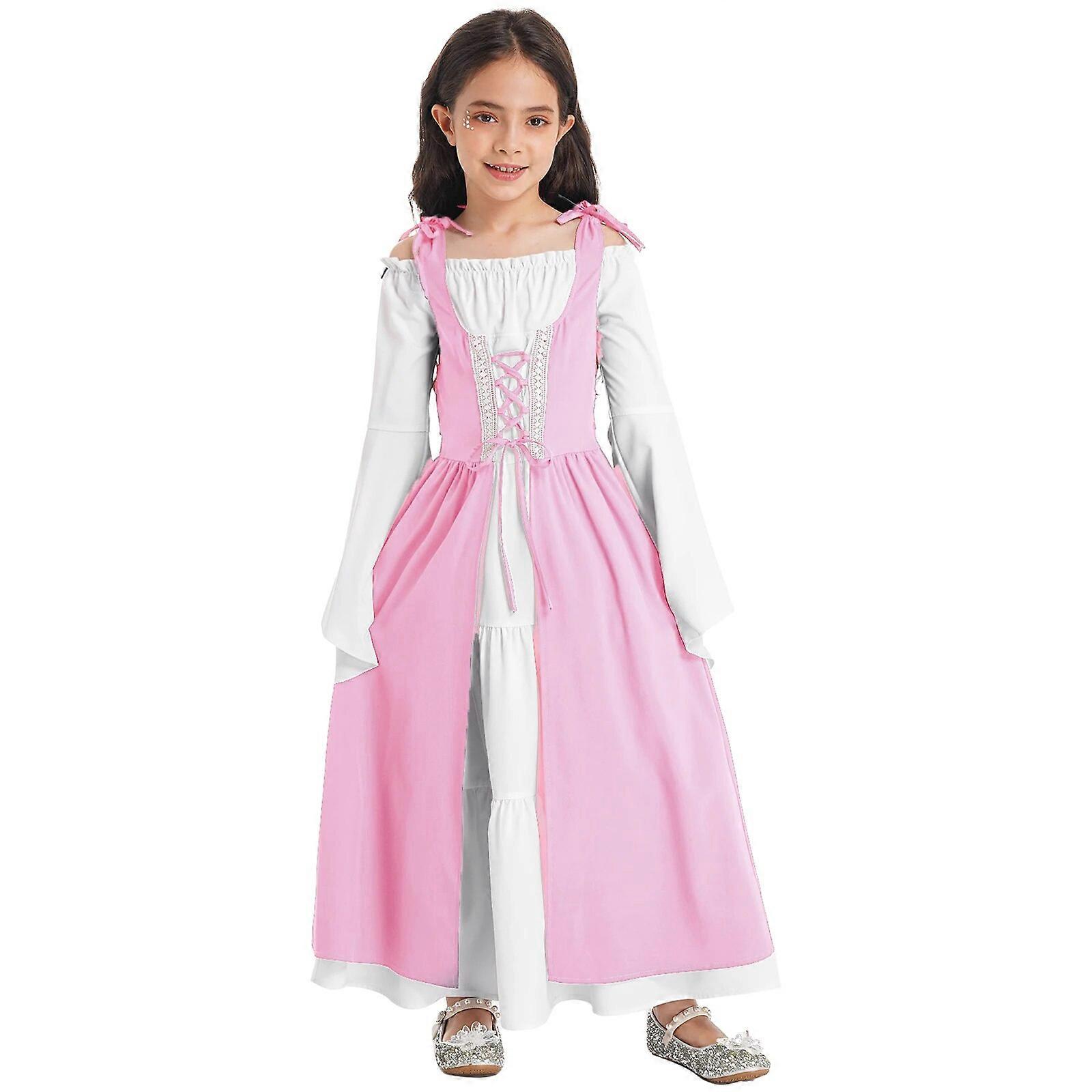 Kids Girls Renaissance Vintage Dress Ball Gown Gothic Medieval Costume Maxi Dresses for Halloween Role-playing Drama Performance