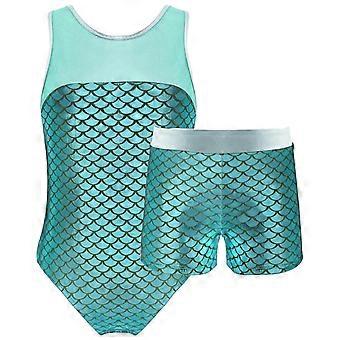 ילדים בנות שרוולים קשקשי דגים הדפס התעמלות בגד גוף ומכנסיים קצרים סט בגדי ריקוד ילדים בגדי ריקוד בלט בגדי גוף תלבושות הופעה