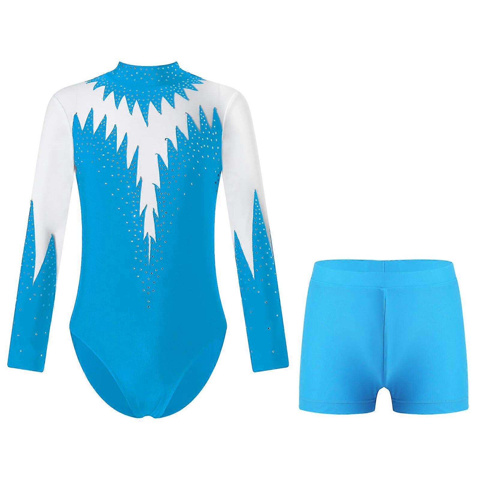 Kids Girls Long Sleeve Ballet Dance Leotards Dancewear Sets Shiny Rhinestone Yoga Bodysuits Children's Figure Skating Jumpsuit