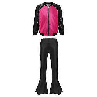 ילדים בנות תלבושות ריקוד ג'אז מטאלי תלבושות פאייטים מבריקים ז'קט תחתוני פעמון מכנסיים סטים של בגדי ריקוד לתחרות ריקודים