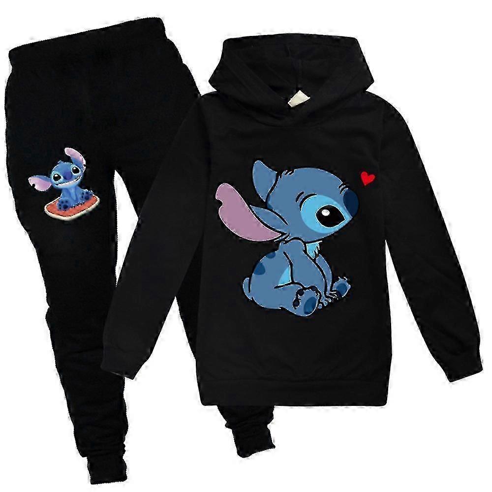 Kids Boys Girls Lilo Stitch Print Hoodie Sweatshirt Long Joggers Pants Tracksuit Outfit Set BSSM