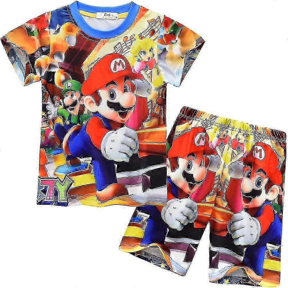 Kids Boys Super Mario Print Short Sleeve T-shirt Shorts Casual Outfit Set Pajamas Summer