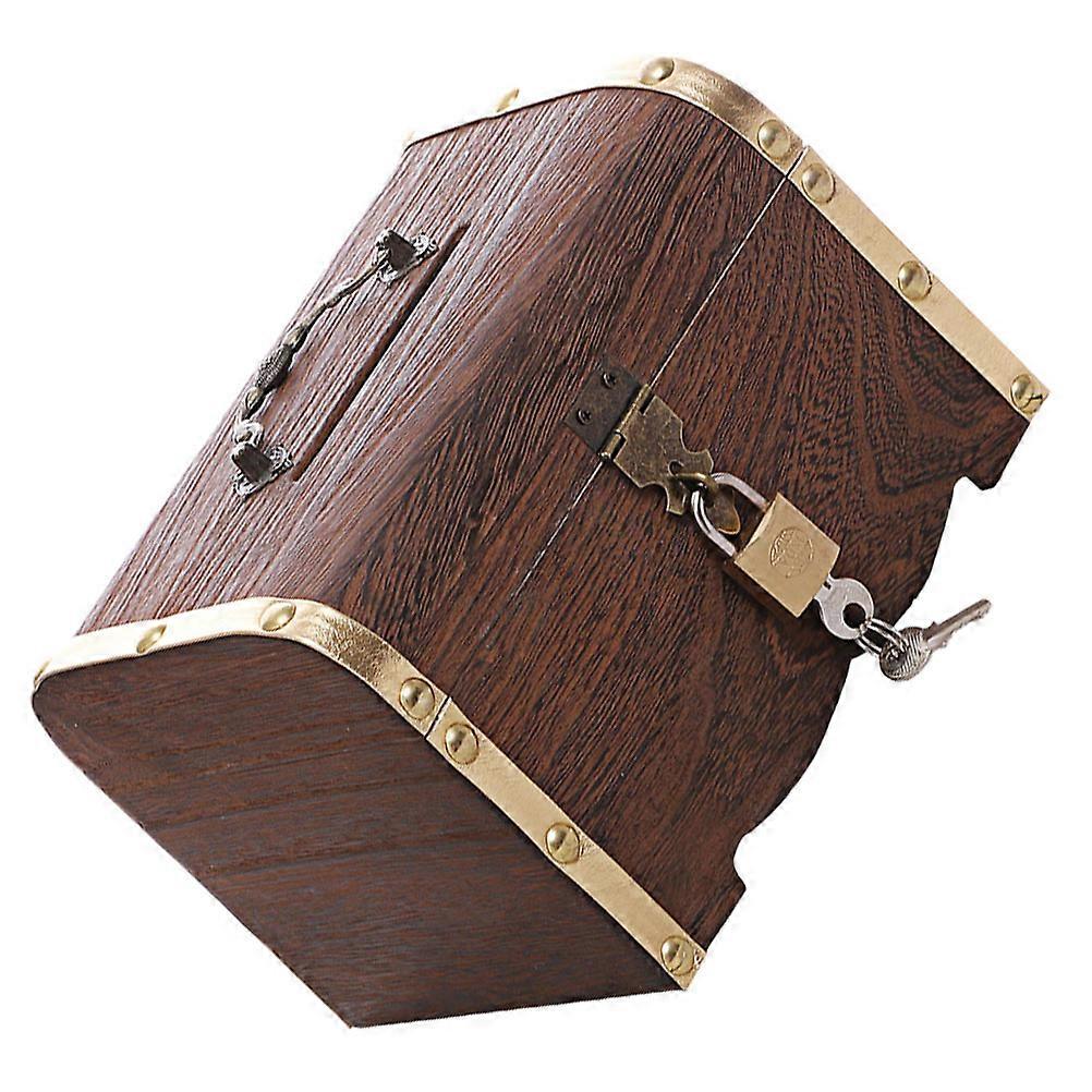 Childrens Handmade Treasure Box Vintage Style Small Treasure Chest Wooden Piggy Bank Coin Change Holder Adults Office Use 1Pcs