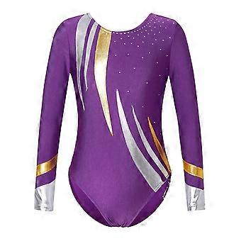 ילדים התעמלות בגד גוף לילדה שרוול ארוך התעמלות בגד גוף בלט טוטו ריקוד בגד גוף מבריק ריינסטון החלקה על הקרח סרבל