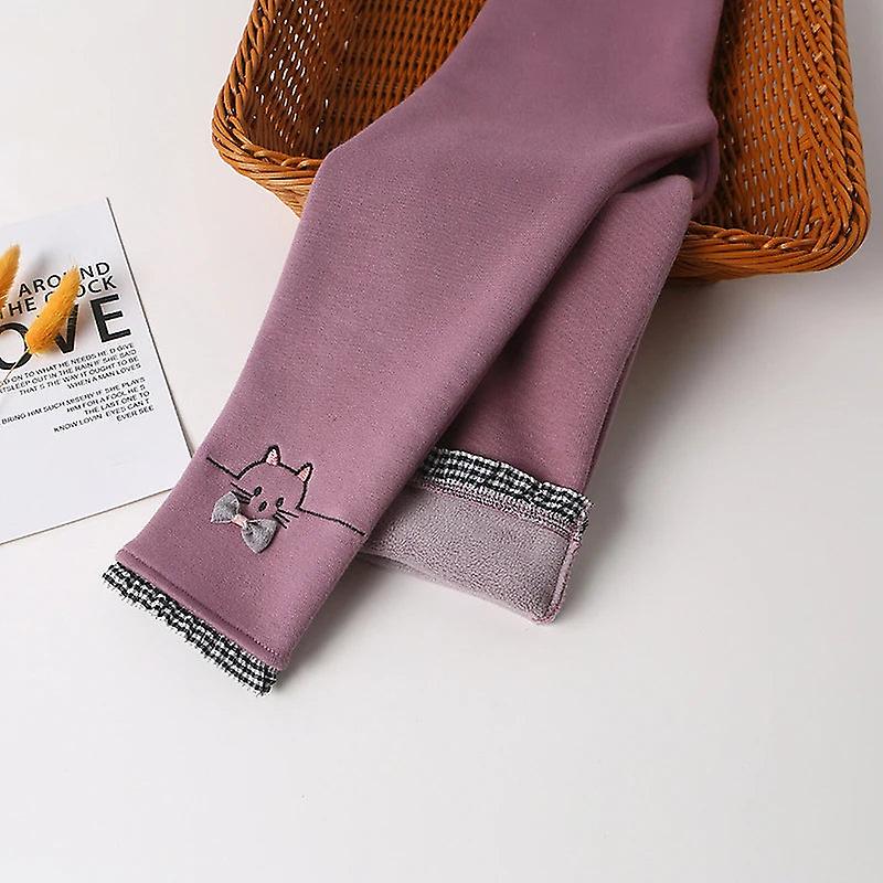 Children Winter Pants Leggings For Girls Cartoon Bow Berber Fleece Warm Thick Skinny Pants 3-12 Years Kids Trousers Clothes