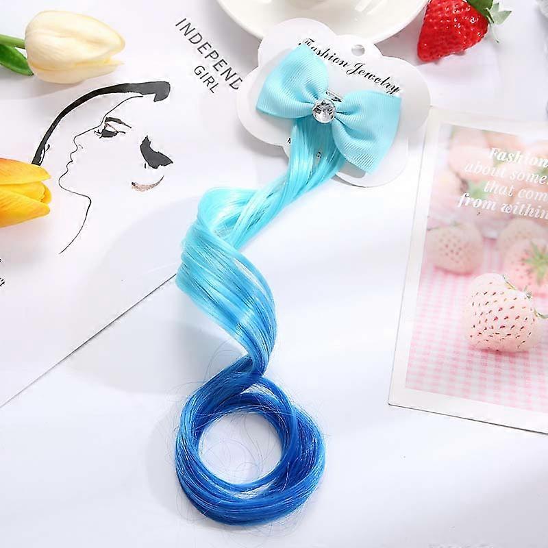 Cute Children Gradient Bow Hair Clips Headdress Ponytail Hair Ropes Baby Girls New Colorful Wig Pigtail Elastic Kids Headwear