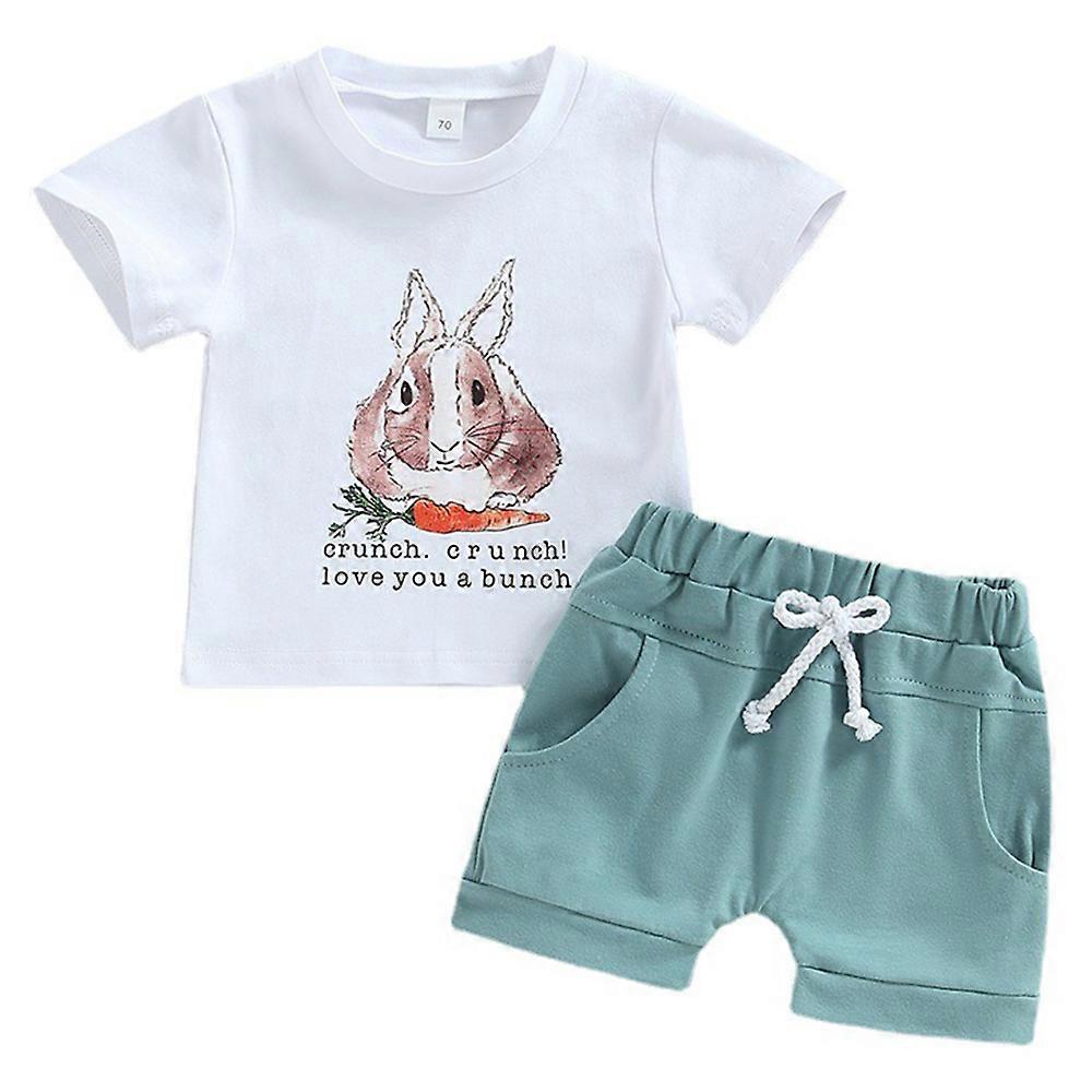 Kids Unisex Easter Bunny Printed Short Sleeve T-shirt Tops Shorts Set Casual 2 Pcs Outfit