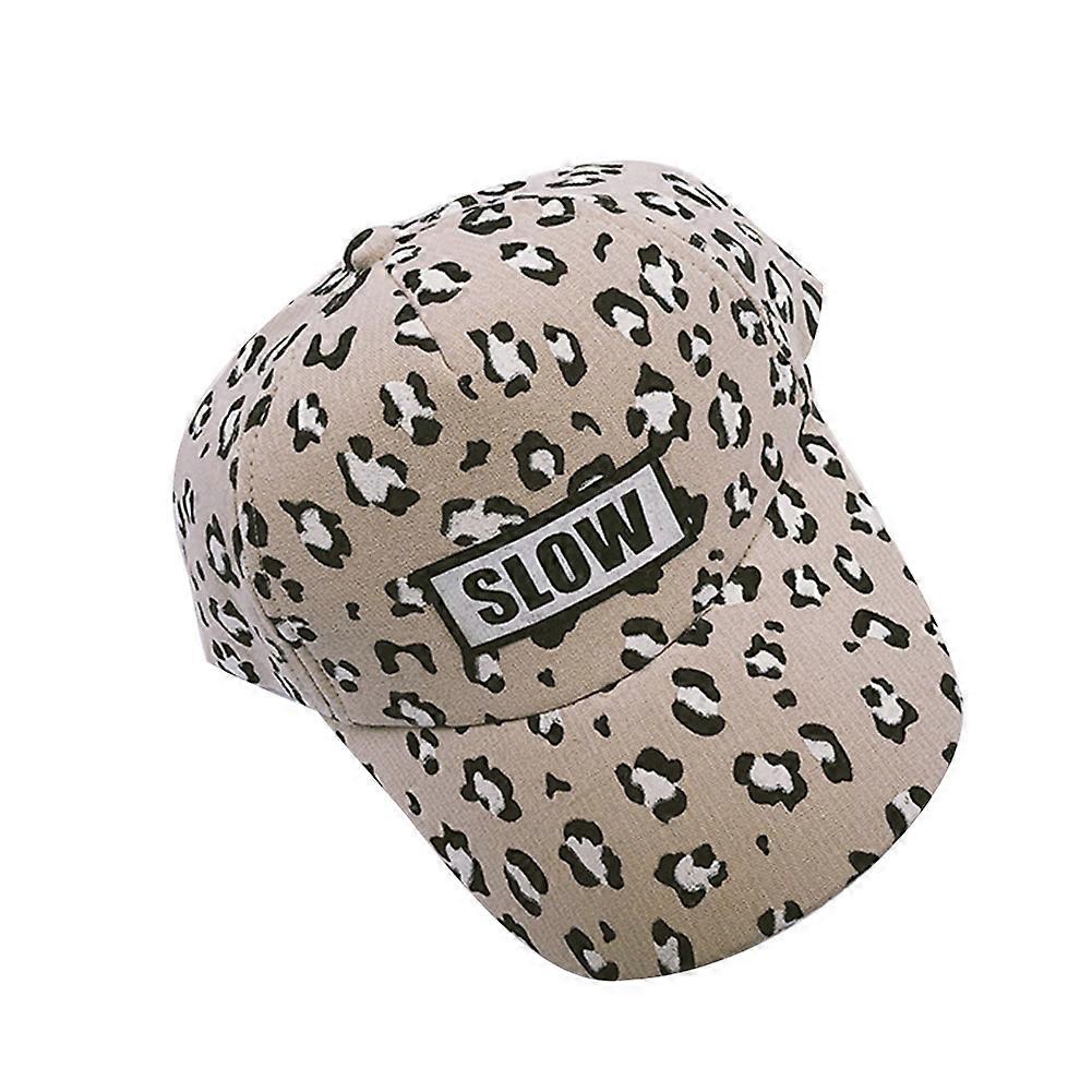 Kids Child Leopard Pattern Baseball Cap Letter Embroidery Adjustable Snapback Hat(Khaki)