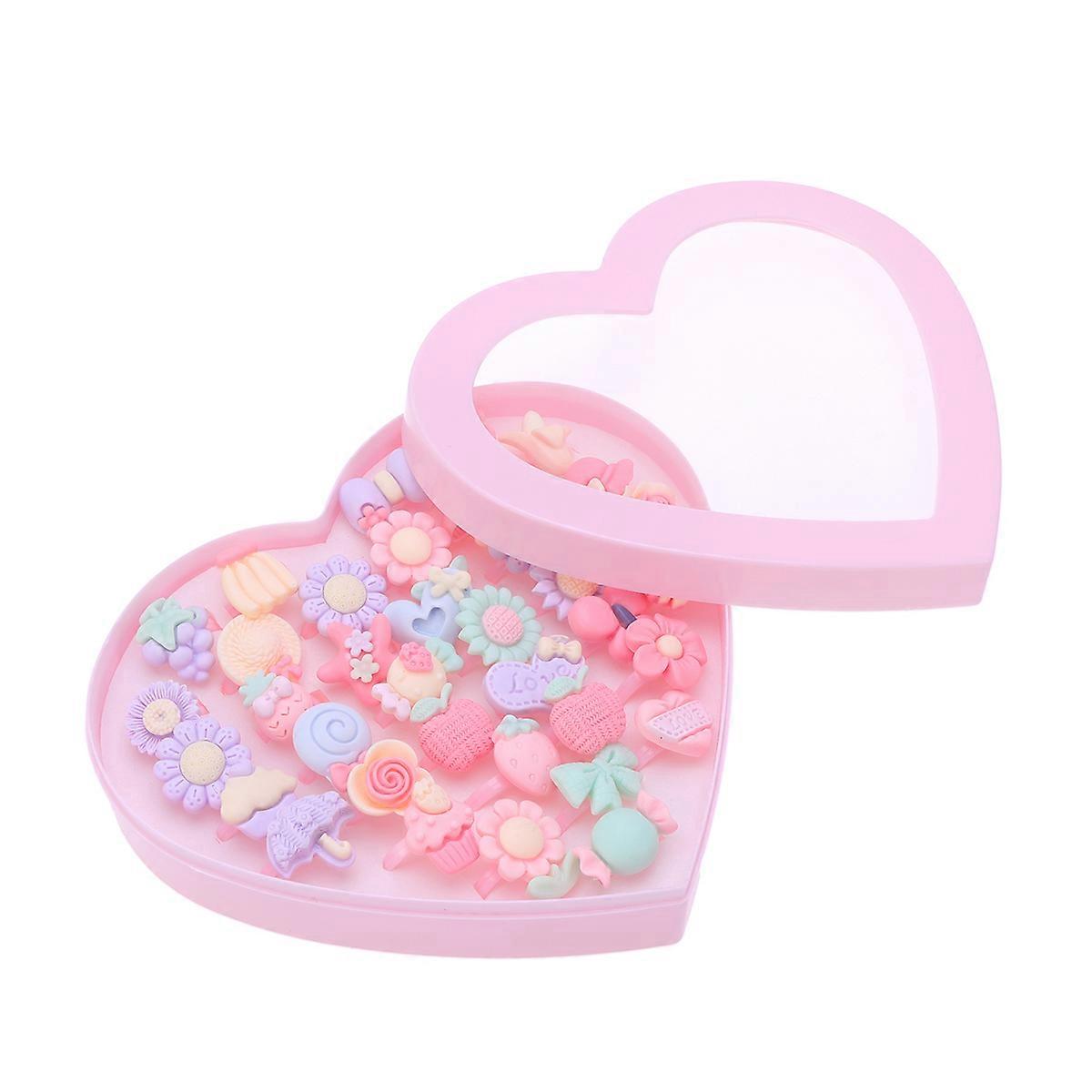 Kids Play Jewelry Macaron Flower Rings Girls Adjustable Size Party Pretend Play 36Pcs