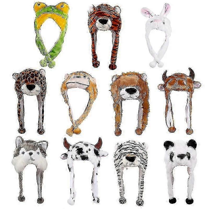 Adult Kids Winter Cute Plush Animal Character Beanie Hat With Pom Pom Ends Long Straps Funny Stuffed Toy Earflap Cap Cosplay