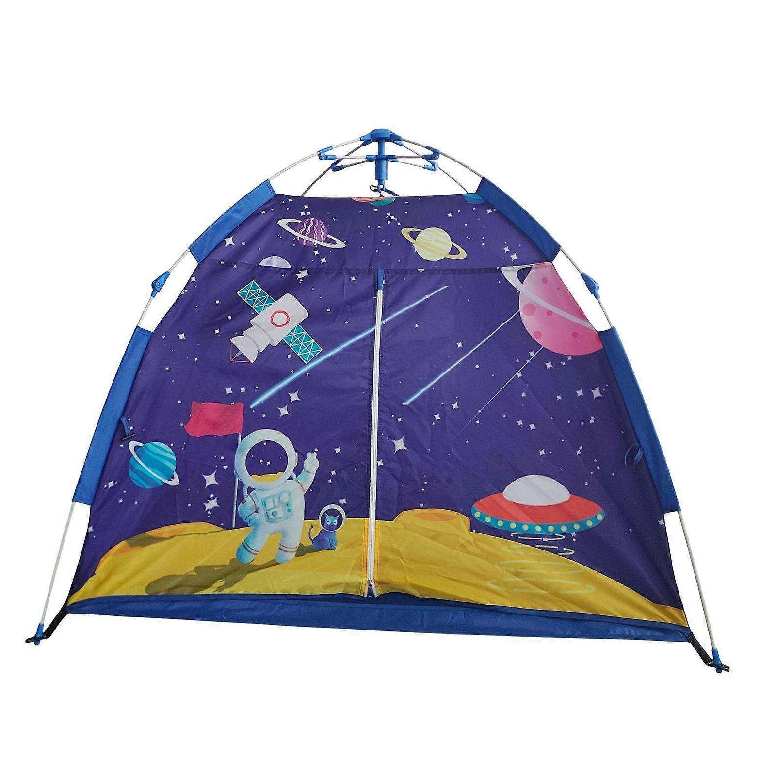 Description: Durability: kids Play Tent is made of oxford cloth material, double stitched seams prevent tearing, and sturdy poles prevent breakage, ensuring long term useBreathability: Teepee Castle Tent's top mesh panel promotes air circulation, keeping the interior fresh and comfortable, allowing your children to enjoy their playing timeUnique Design: Indoor Playhouse adopts a fun and engaging space theme design, inspiring children's imagination to the while encouraging them to play activelyEasy to Observe: kids Playroom's top mesh panel allows parents to easily observe their children inside the tent, allowing them to play with peace of mindSpacious and Portable: Playhouse Tent's size is 130cmx130cmx110cm, providing ample space for children to move freely. Weighing only 1.3 kg, it is easy to transport and install anywhere, suitable for indoor use or outdoor adventures such as picnics in the park Size Chart: 130cmx130cmx110cm/51.18inchx51.18inchx43.31inch Package Includes: 1 kids Play Tent Note: 1.This is not infant toy, please take away from children to avoid eating.2.Please allow slightly errors due to manual measurement and different monitors.