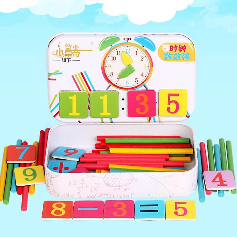 Kids Math Toy Magnetic Iron Box Digital Clock Wooden Stick Number Counting Toy