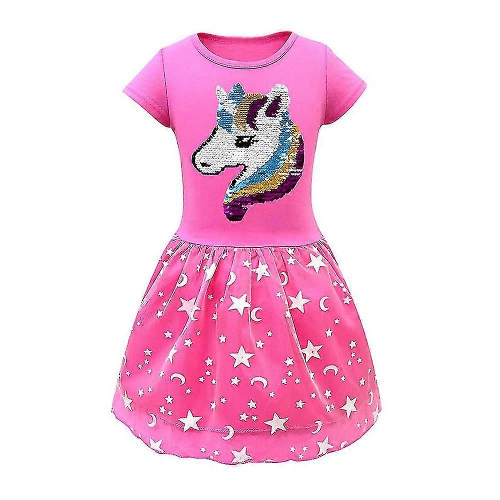 Kids Sequins Unicorn Princess Dress Short Sleeve A-line Dresses For 2-7y Girls