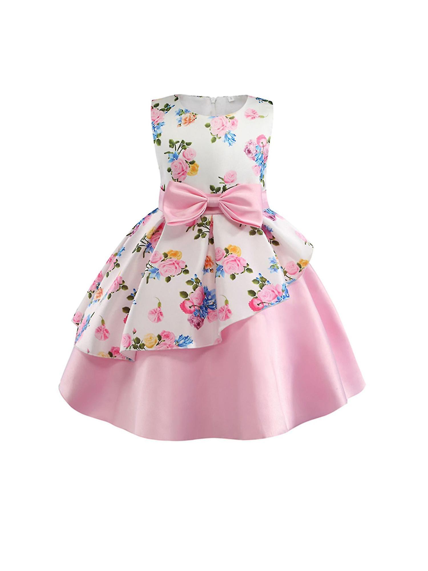 Kids Floral Sleeveless Ball Gown Girls Princess Dress Bowknot Decor (pink)