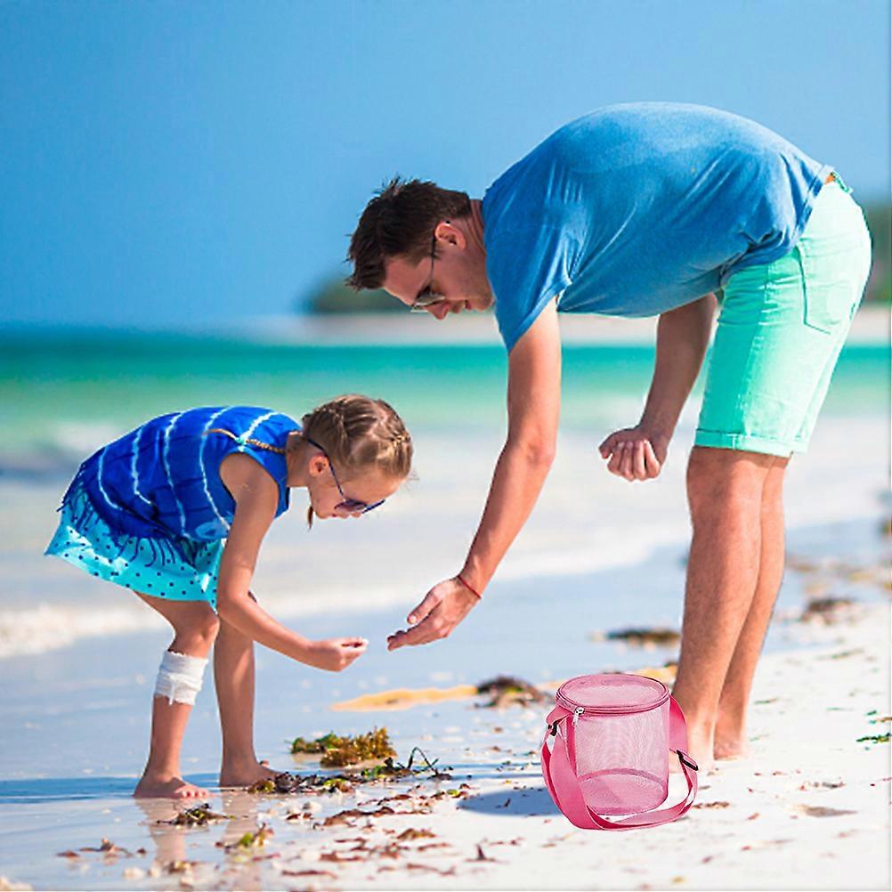 Kids Seashell Mesh Bag Tote Cylinder Shell Collecting Bags Beach Toy Bag with Zippers Adjustable Carrying Straps Treasure Sandboxes Net Bag