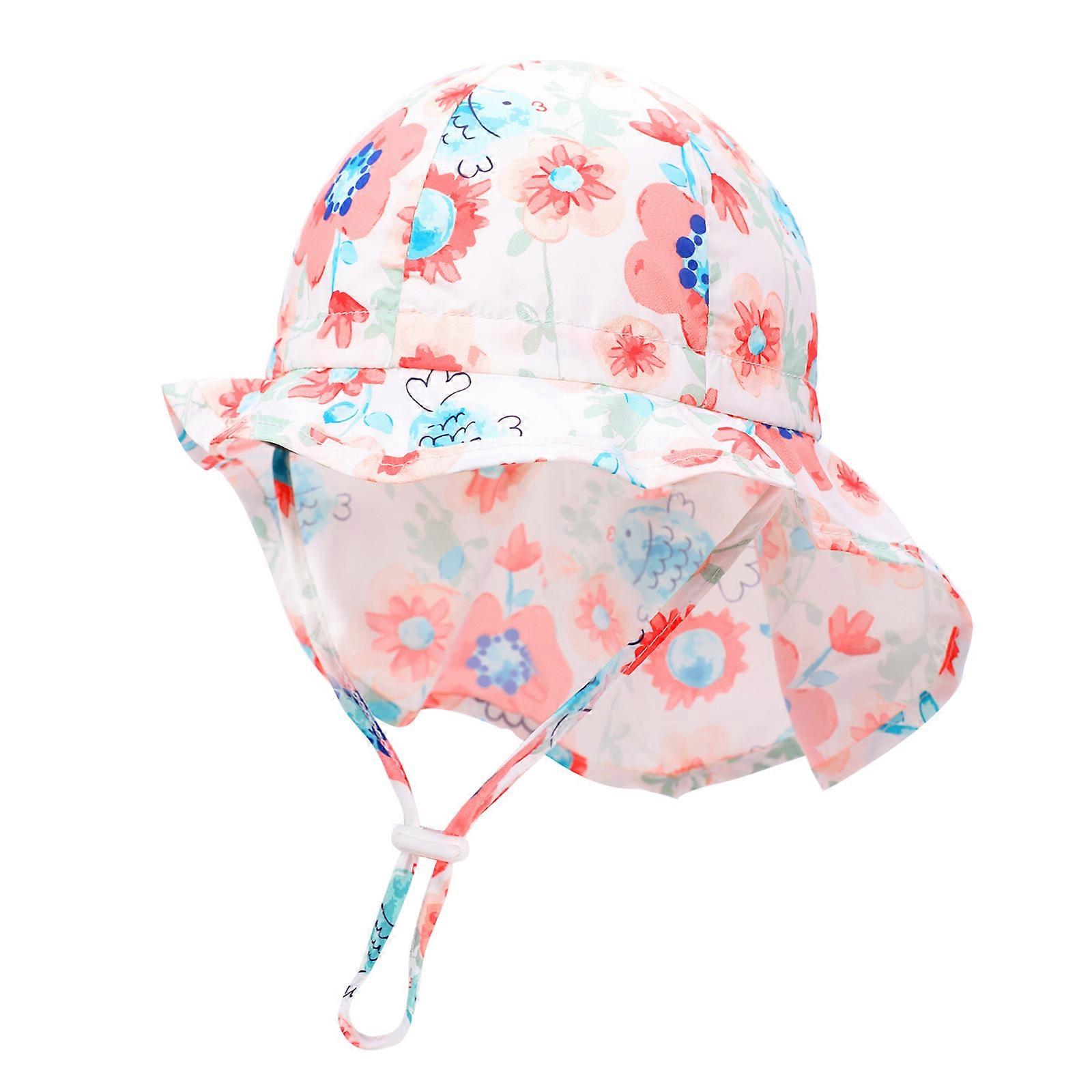 Kids Wide Brims Sun Hat Protective Neck Cover Bucket Hat with Adjustable Chin Strap Sunproof Hat For Toddler Boy Girl FLW 0 to 12M